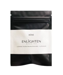 DÖSE ENLIGHTEN RITUAL TEA is offered to nourish your senses with a jolt of luscious citrus combined with charismatic lavender blossoms, earthly notes of rosehips and refreshing scent of lemongrass to encourage a journey that is ripe for thoughtful reflection and discovery. This specially curated organic tea blend will mask the taste of mushroom beautifully while mitigating instances of nausea and upset stomach through the steeping process. Ingredients: lemongrass, citrus peel, rosehips, lavender blossoms + one gram golden teacher mushroom